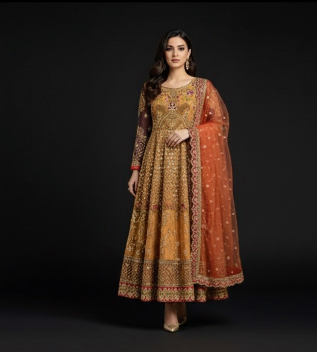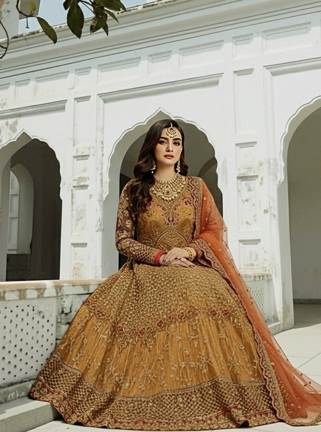 • Exquisite Embellishments: Lavishly adorned with traditional Pakistani hand embroidery, featuring shimmering dabka, delicate naqshi, radiant sequins, and intricate tilla work that catches the light with every movement.