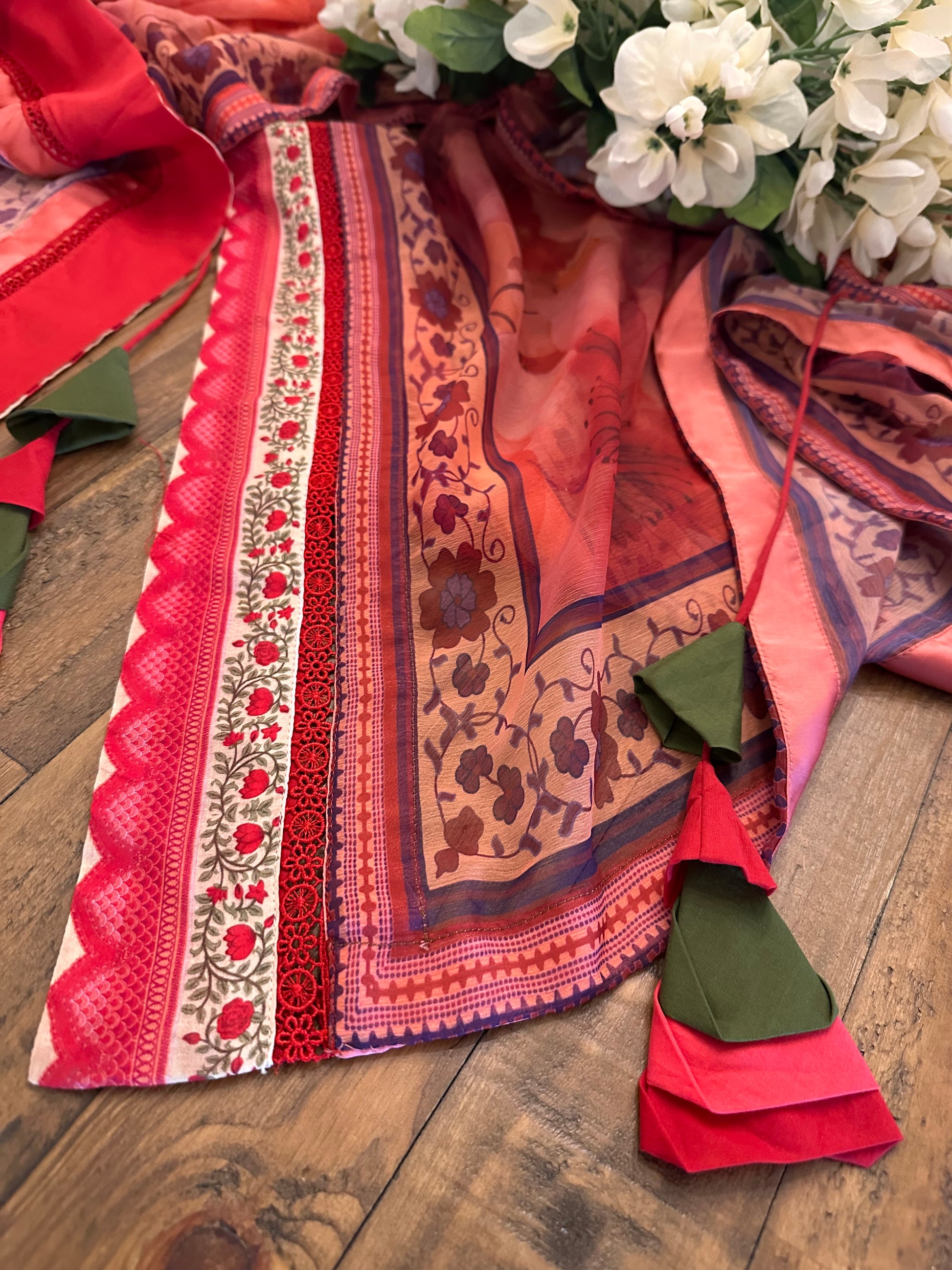 Dupatta: Printed chiffon dupatta with four-side detailing