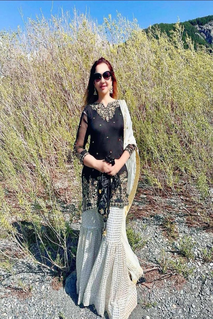 Nabila is a stunning traditional and cultural style Grara dress that is sure to turn heads. The black and white design is the perfect canvas for the beautifully hand-made shirt, featuring resham, kora, and bead embroidery. The grara fabric adds an extra touch of elegance with its gorgeous sequin work. This dress is a true work of art, crafted with precision and care.