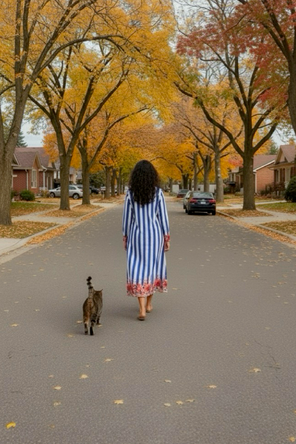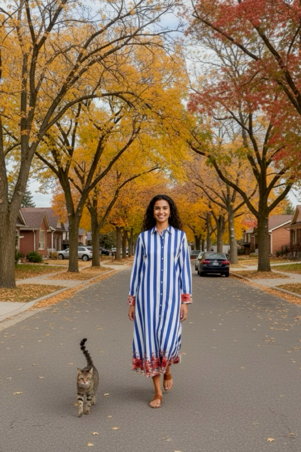 Styling Tips • Pair with tan sandals or nude heels for a refined daytime look. • Add a slim belt at the waist for a more defined silhouette. • Style with delicate gold jewelry or pearl studs to balance the bold stripes. • Throw on a light cardigan or denim jacket for a layered autumn vibe.