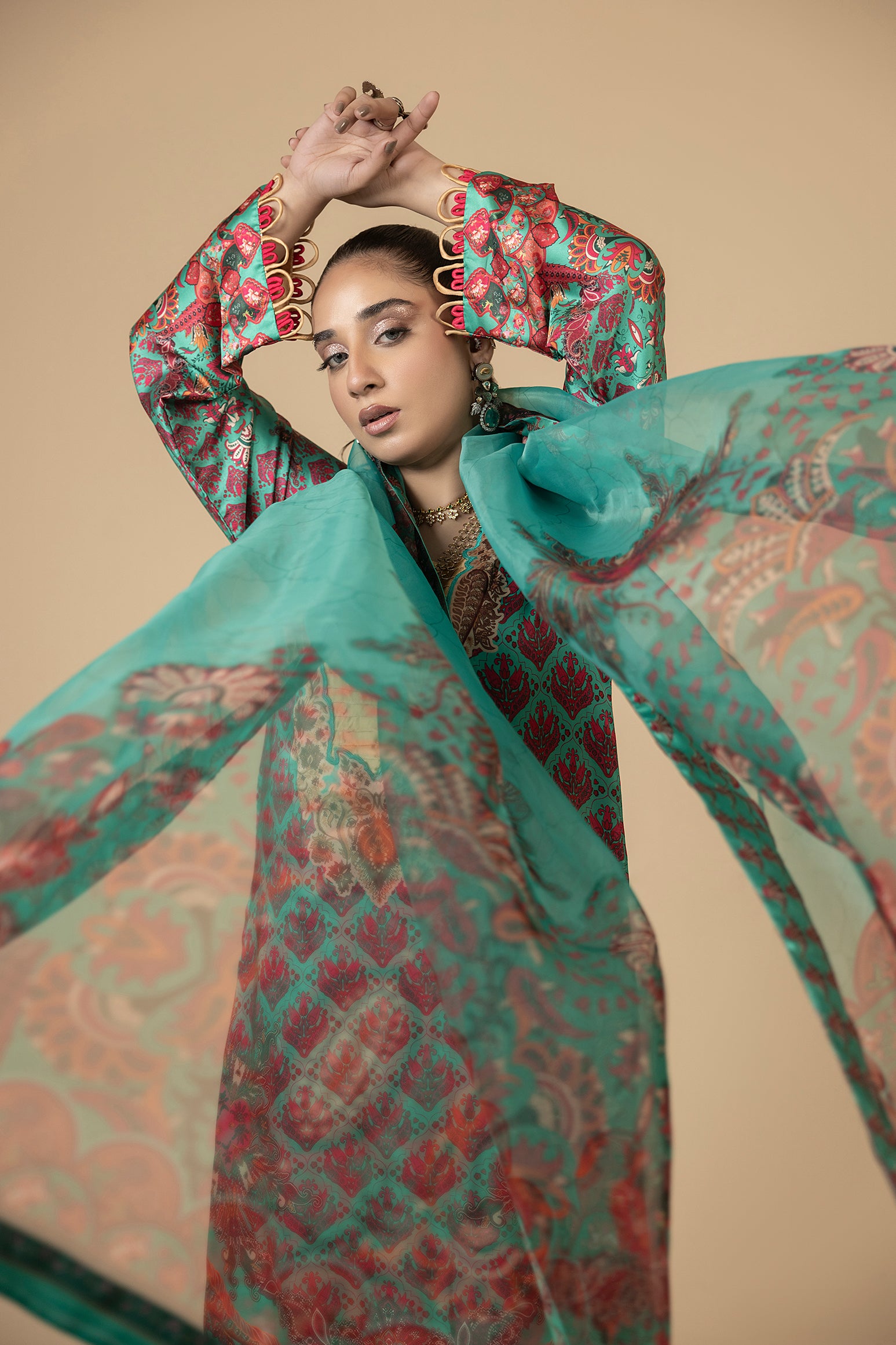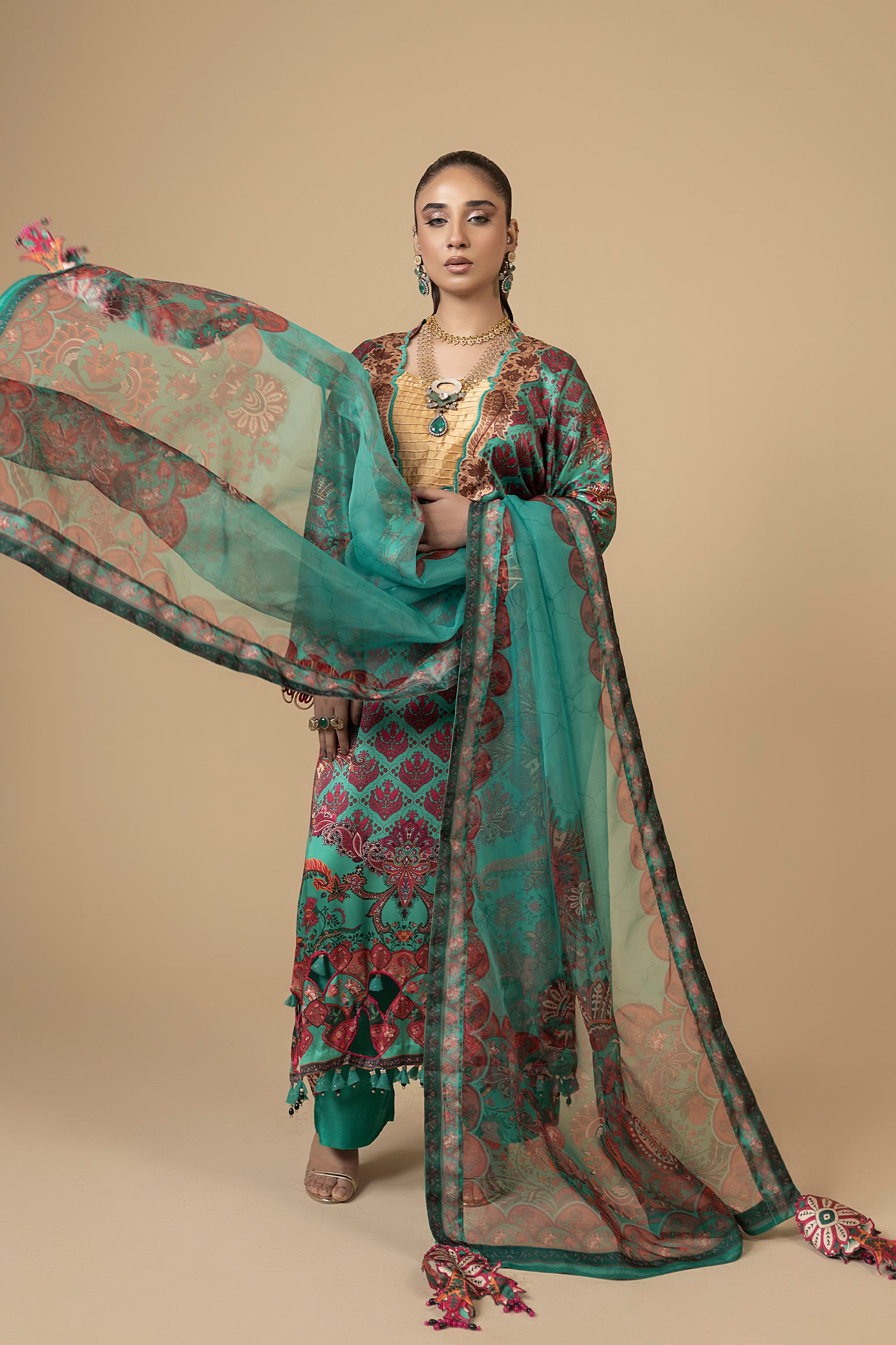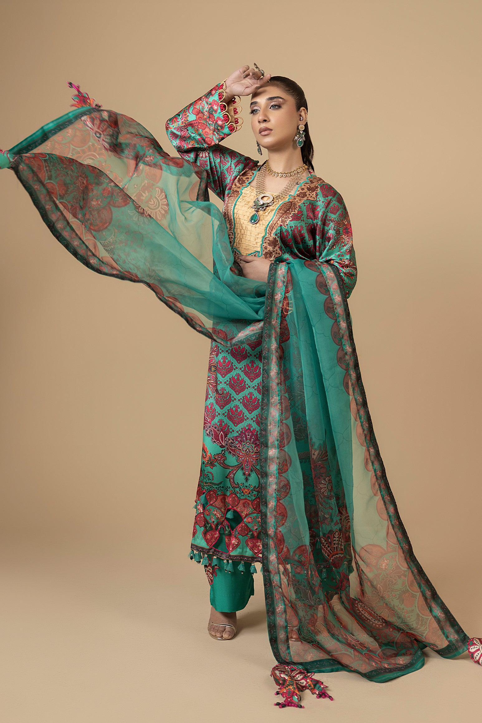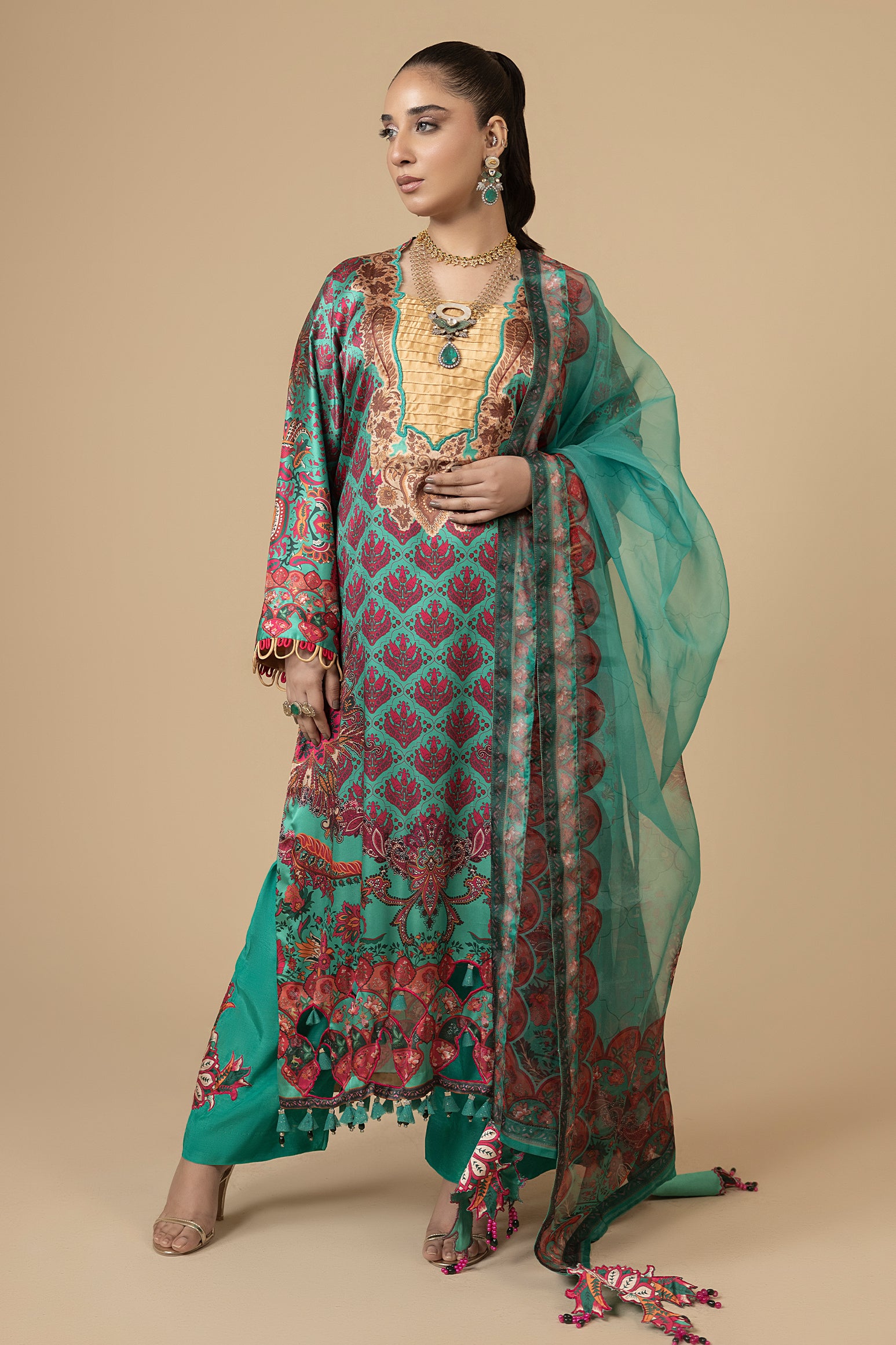 Sea Jasmine – Elegant Sea Green Silk Dress with Organza Dupatta
