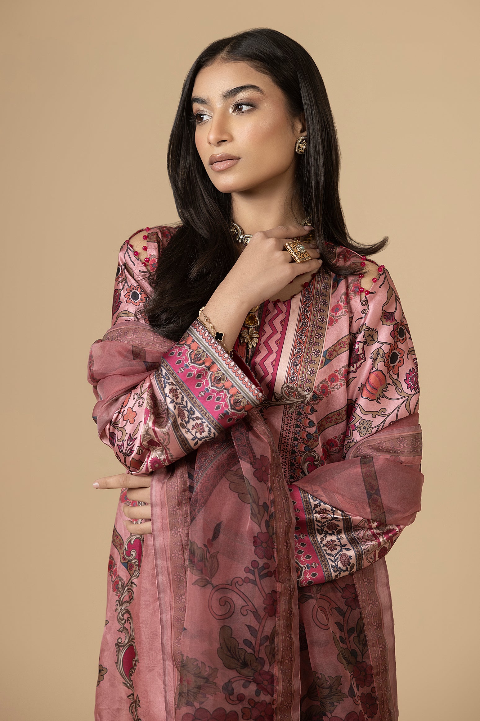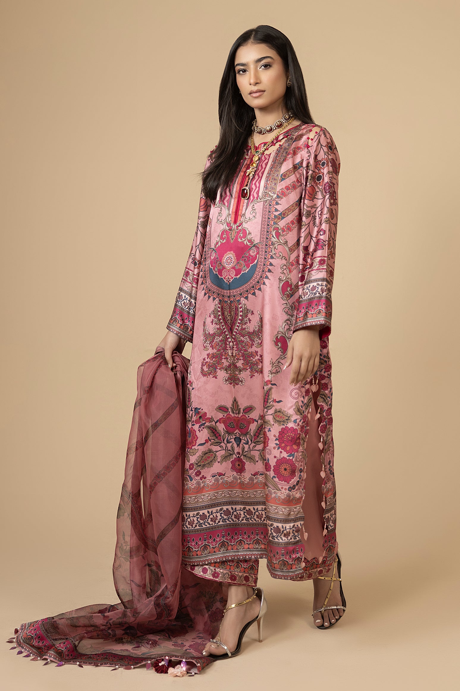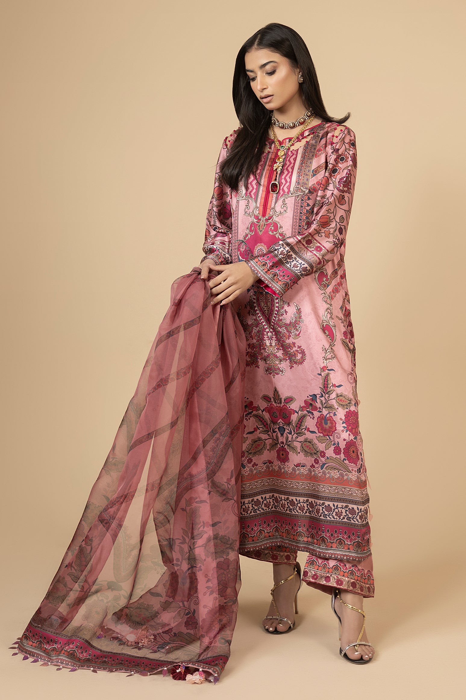 Tea Rose – Elegant Traditional Pakistani Silk Dress with Printed Organza Dupatta
