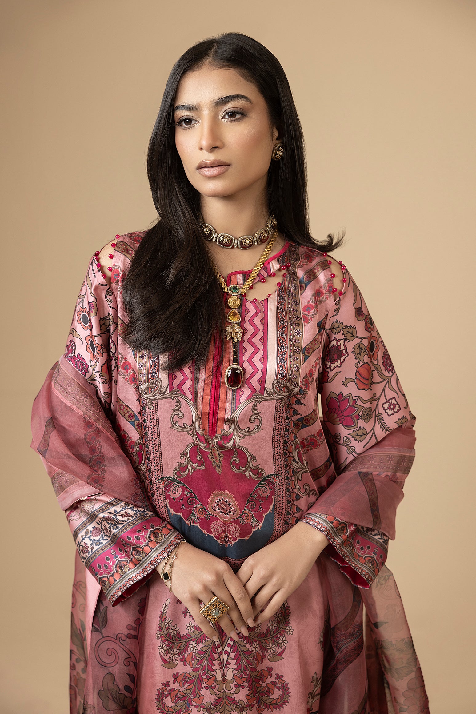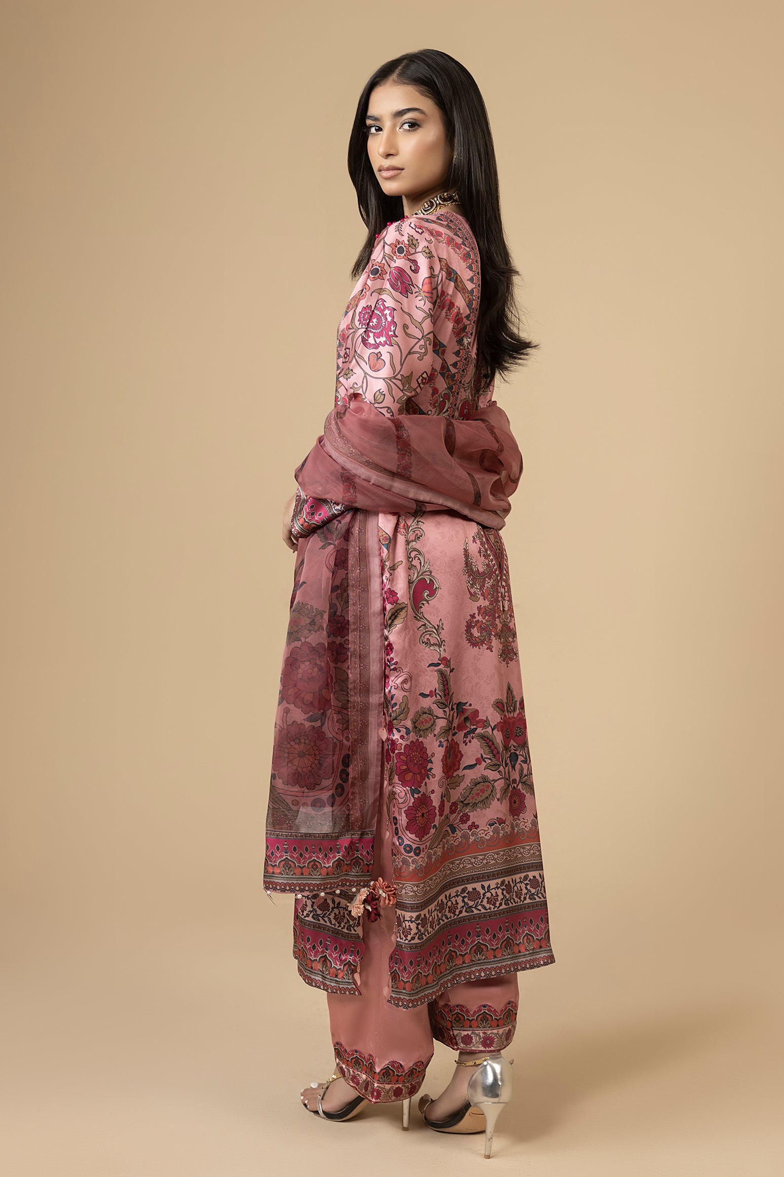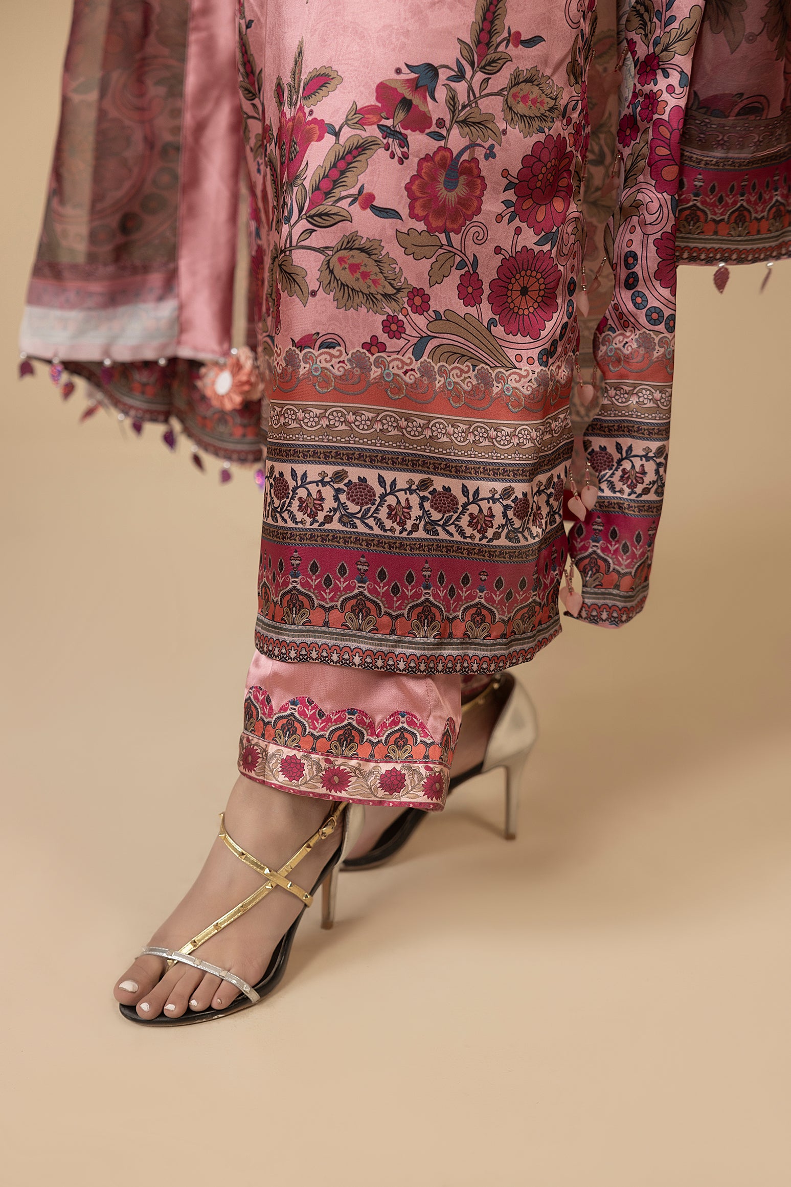 Tea Rose – Elegant Traditional Pakistani Silk Dress with Printed Organza Dupatta