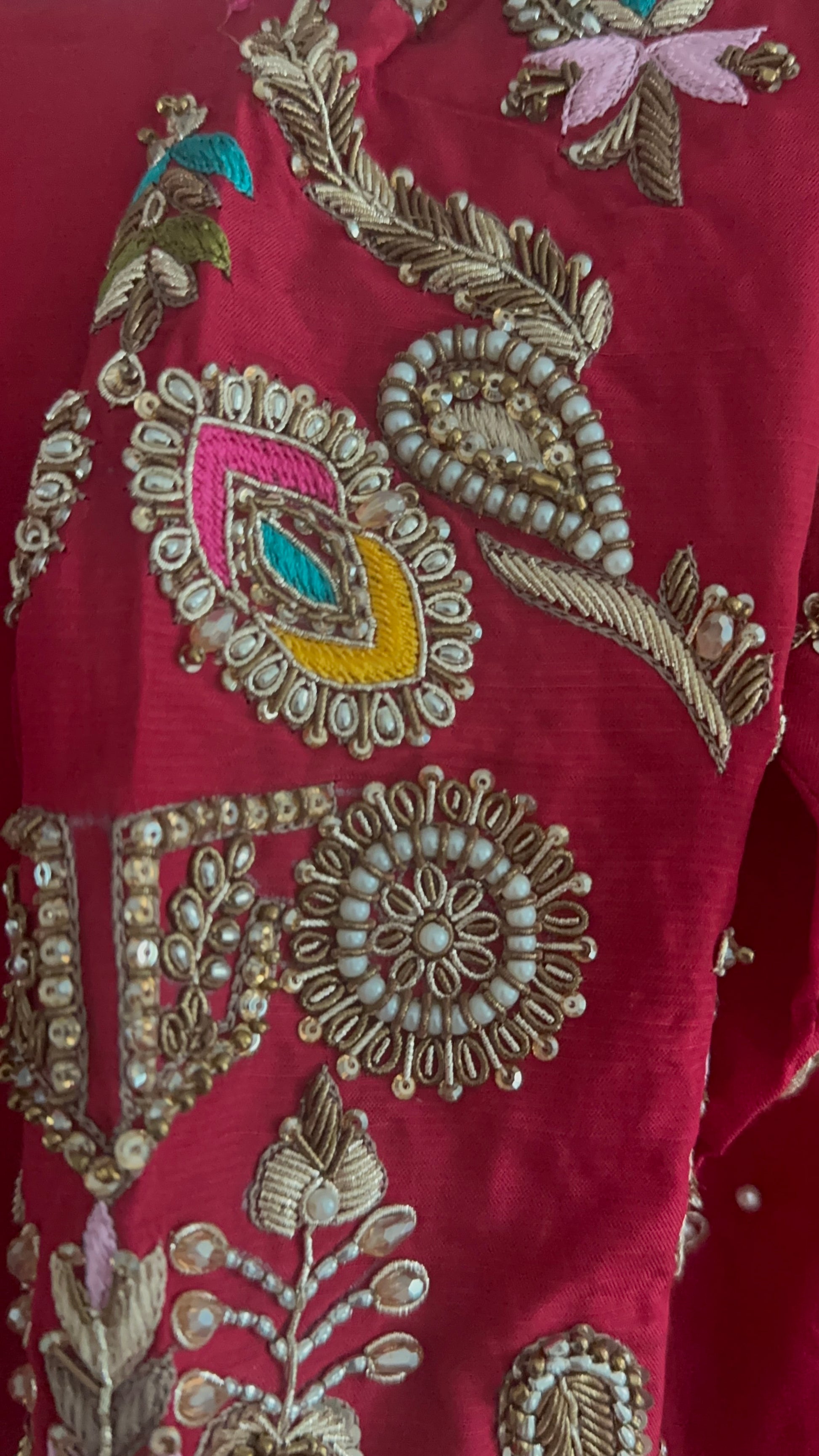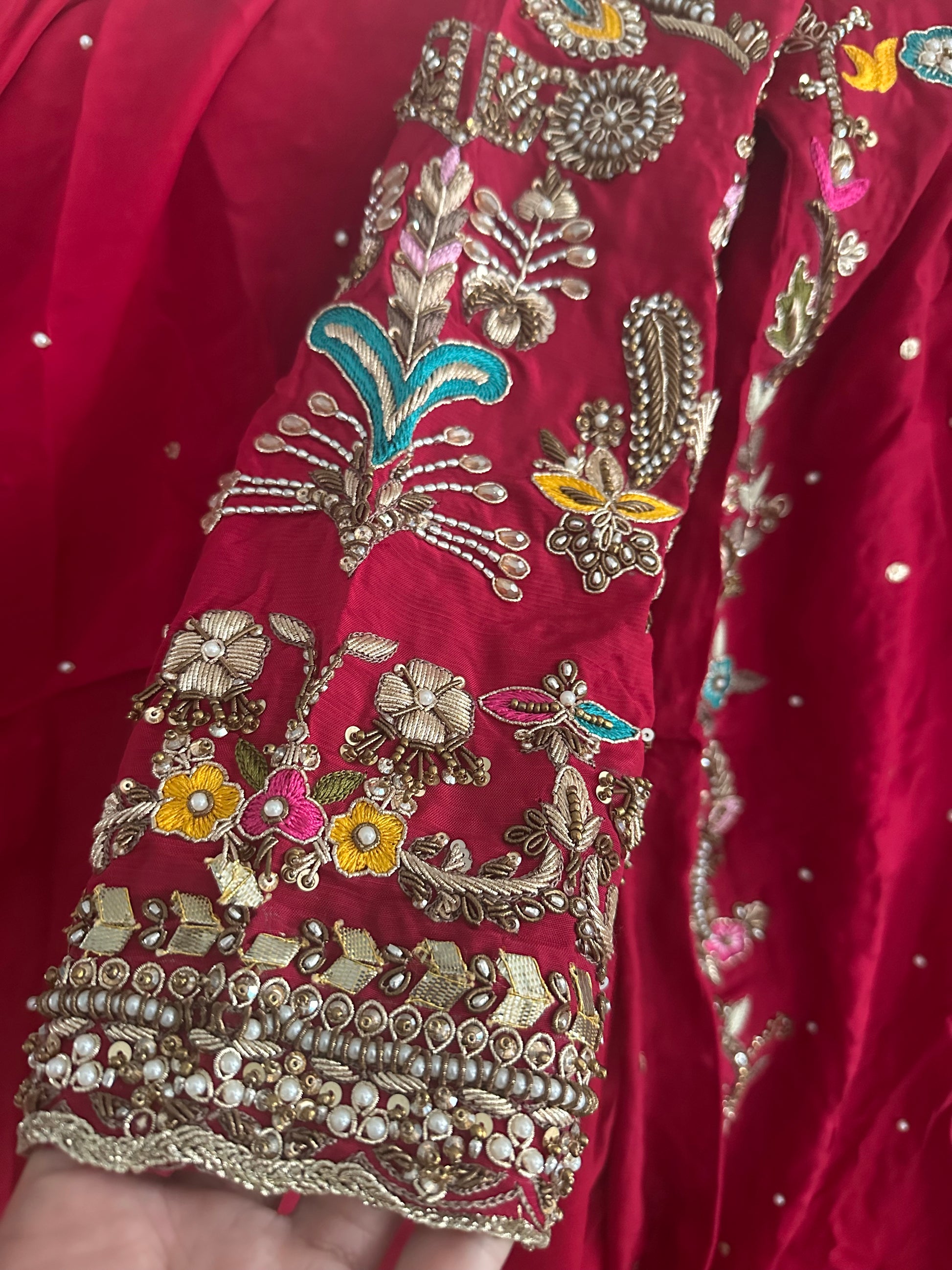 Step into the magic of dusk with "Twilight Blossom," a captivating ensemble inspired by the serene beauty of flowers blooming under the fading light. Draped in luxurious fabric, this dress features exquisite, vibrant embroidery that tells a story of elegance and grace. Twilight Blossom brings together traditional artistry and contemporary sophistication, making it a perfect choice for your most cherished moments.