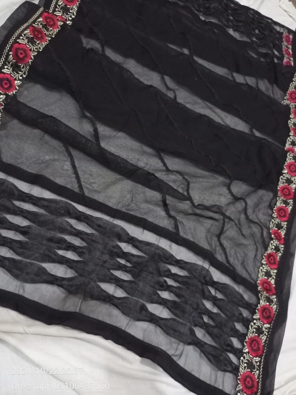 Dupatta and shirt are made out of Khaadi net fabric while pants are of grip stuff.